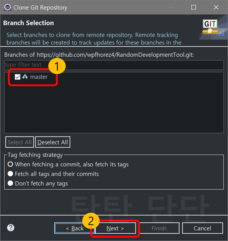 'master' 는 선택해 주시고, 나머지 브런치의 경우 필요하면 체크하시면 됩니다.