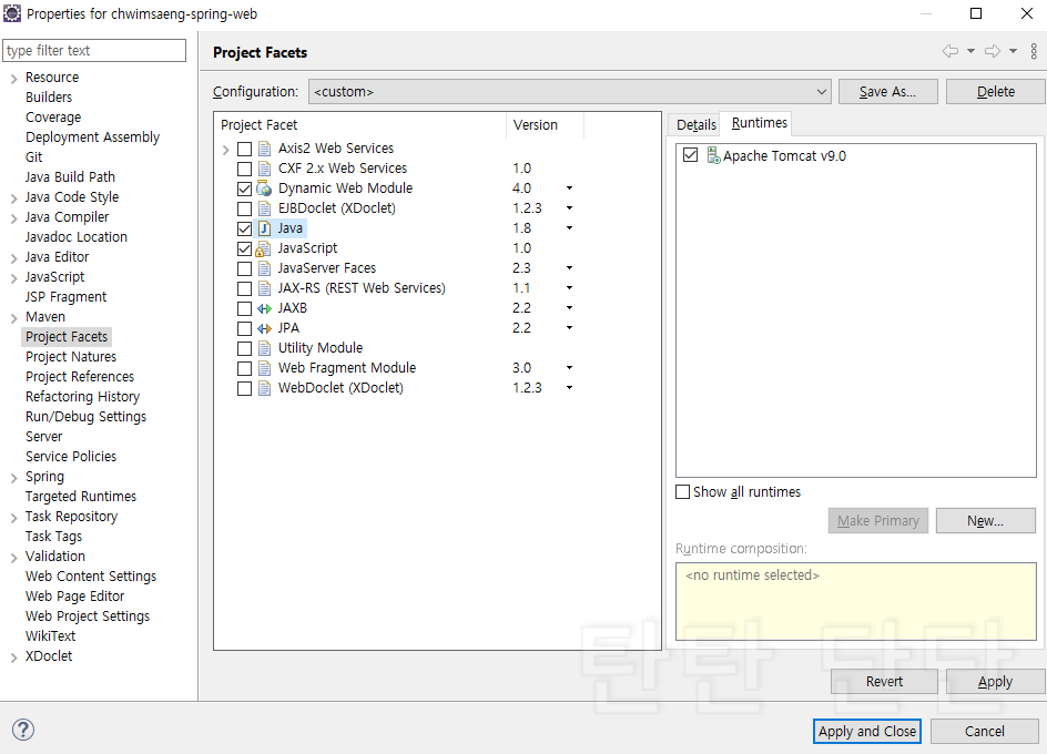 3. Java 체크 및 Runtimes 에서 톰캣 설정