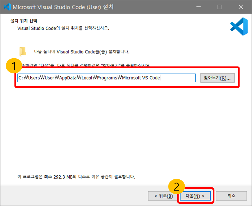 4. '설치 위치' 를 확인하고 '다음' 을 클릭 후