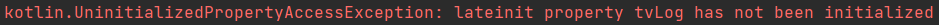 kotlin.UninitializedPropertyAccessException: lateinit property tvLog has not been initialized