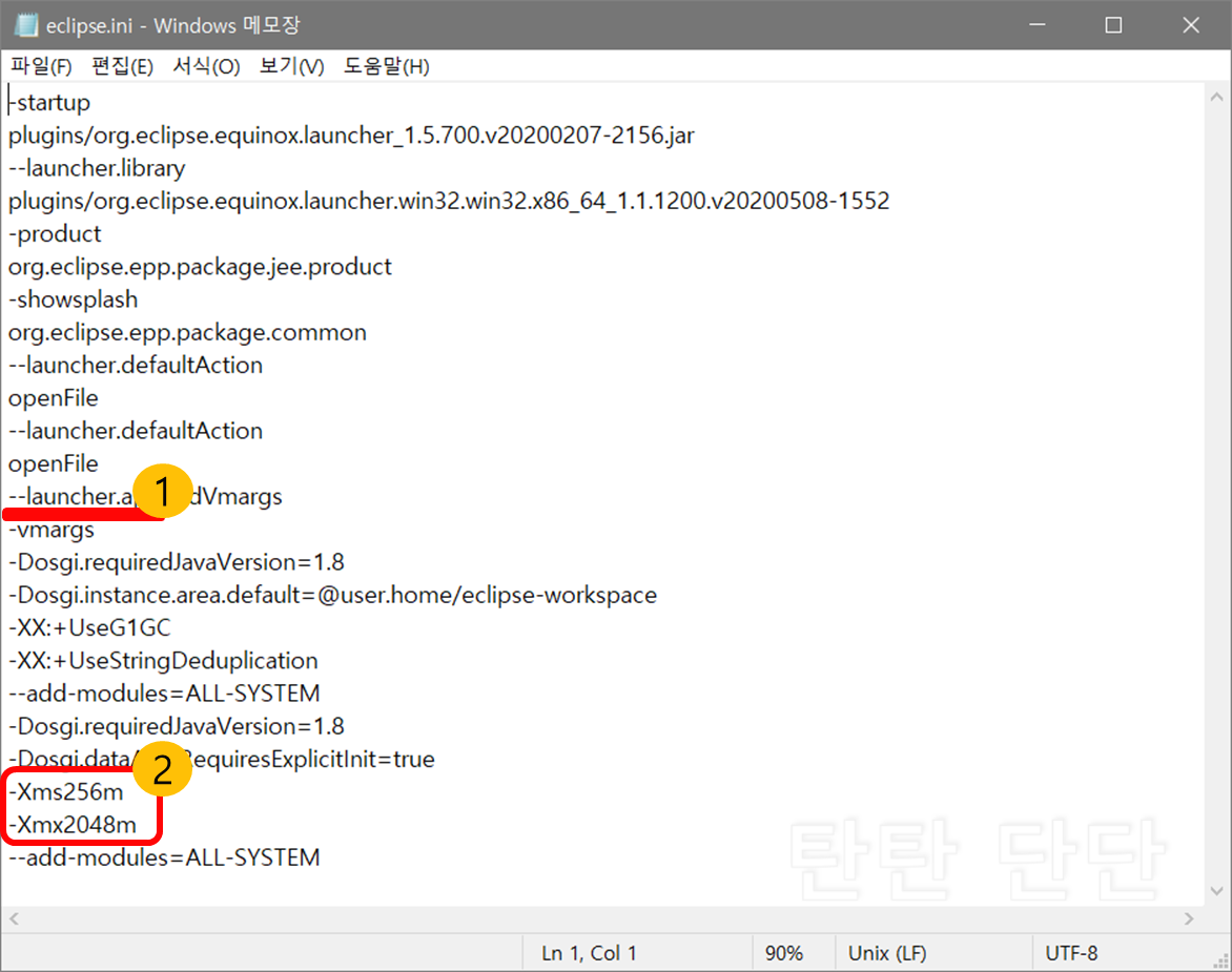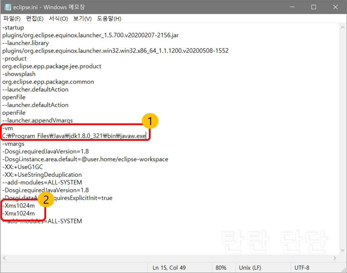 eclipse.ini 파일기본 설정에 대해서 알아보겠습니다.