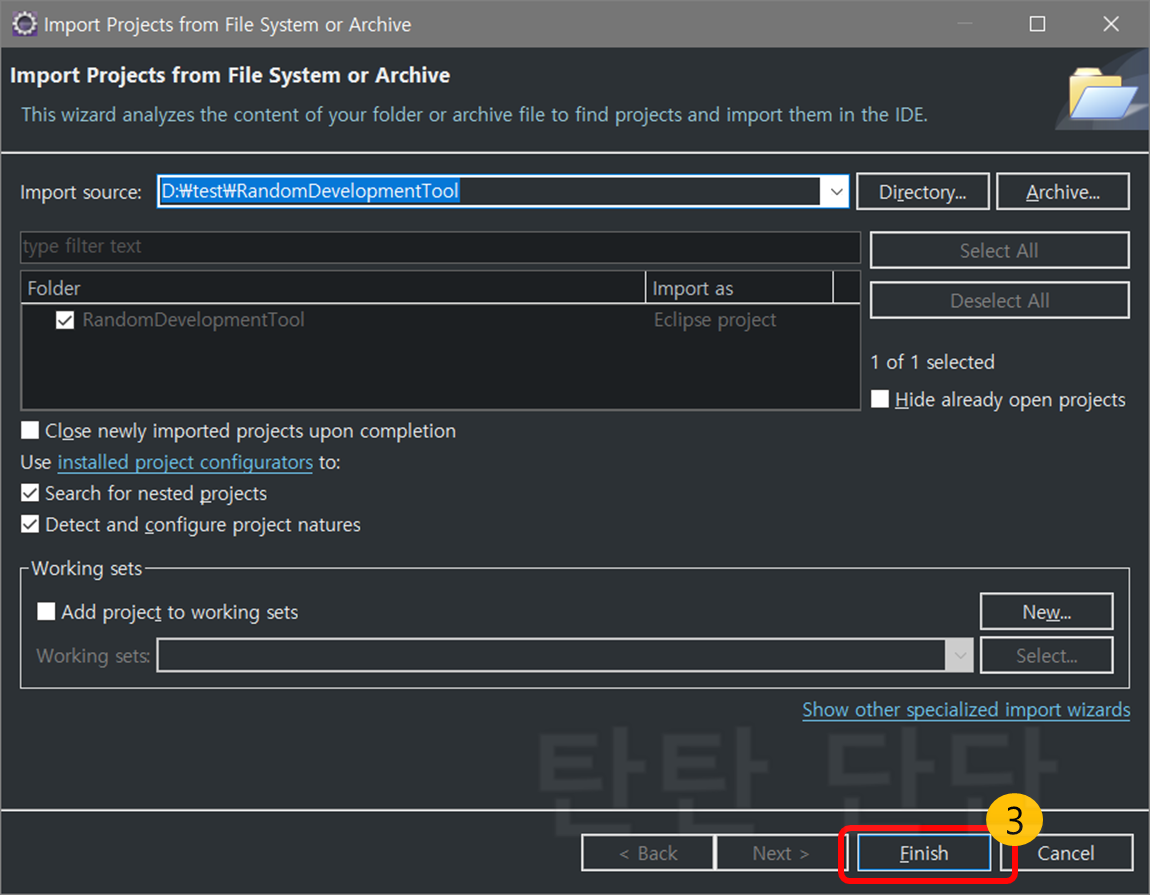 마지막으로 새롭게 생긴 창에서 'Finish' 를 클릭합니다.