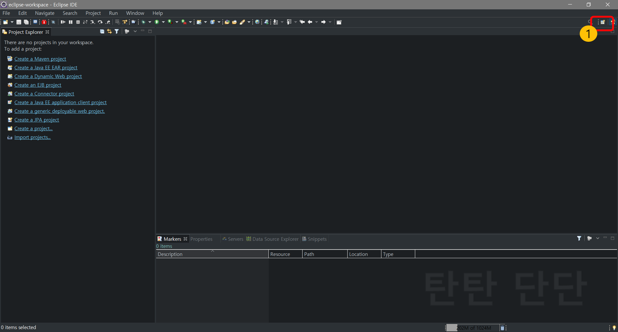 1. 이클립스 오른쪽 상단에 있는 'Open Perspective' 클릭 후